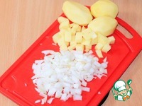 Картофель и репчатый лук очистите и нарежьте кубиками среднего размера. |