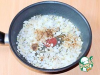 Всыпьте порошок кориандра, чили порошок, порошок куркумы и раздавленный чеснок, обжаривайте в течение минуты. |