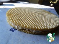 Накрываем вторым коржом и слегка придавливаем, должно все постоять минут 15 что бы коржи пропитались! |