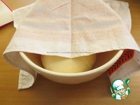 Миску смазать маслом и положить у нее тесто. Накрыть тесто и оставить на расстойку в теплом месте на 1-1.5 часа. |
