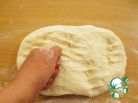 Рабочую поверхность присыпать мукой и выложив тесто, обмять его. |