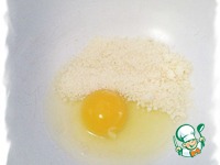 В отдельнй посуде смешать яйцо и натёртый на мелкой тёрке пармезан. |