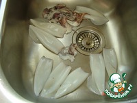 Промыть очищенных кальмаров, дать стечь воде. |