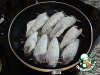 запанировать тушки кальмаров в муке. |