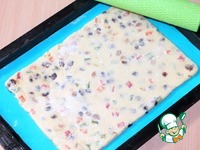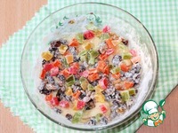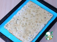 В полученное медовое тесто вмешайте подсушенные орешки и вымоченный и обсушенный изюм. Тесто должно быть густое и не липнуть к рукам. |