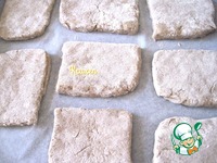 Часть теста выкладываем на присыпанную мукой доску. Пользуясь мукой, формируем квадратный пласт толщиной 1 см и разрезаем его на части желаемого размера. |