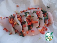 Нафаршировать этой смесью грудку и посолить, можно добавить специи по вкусу. |