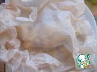 Полить сливкам, завернуть в пергамент и отправить в микроволновку. Запекать при мощности 750, 7-8 минут. |