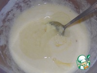 Манную крупу залить кефиром, перемешать и оставить на 10 минут. |