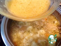Как только суп закипит, взбалтываем 1 яйцо и тонкой струйкой, помешивая, вливаем в суп. |