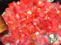 К луку добавить помидоры (вместе с соком) перемешать с луком и накрыть крышкой. тушить 5 минут |