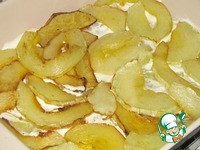 Обжаренные полукольца выкладывать плотно в блюдо для запекания. Когда дно закроется - смазать первый слой небольшим слоем сметаны, и следующую порцию выкладывать сверху. |
