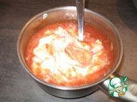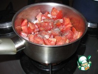 Для соуса, кладем лук и томаты в кастрюльку, солим, перчим. Наливаем 100 мл. воды и отвариваем на медленном огне 7-8 минут. |