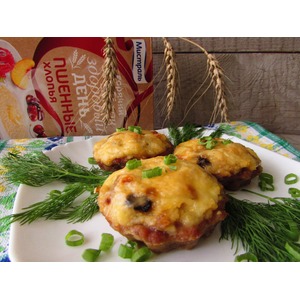 Описание: Тарталетки из мясного фарша наполнены пшёнными хлопьями с обжаренными грибами и луком и запечены под сыром. Оригинальное блюдо из серии 2 в 1, которое можно подать как самостоятельное с овощами, так и в качестве закуски.