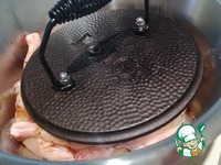 Придавливаем прессом и оставляем мариноваться в холодильнике (мы маринуем при температуре +4*С). В принципе, достаточно нескольких часов. Но мы оставляем цыплят на 2 суток. Так получается вкуснее. |