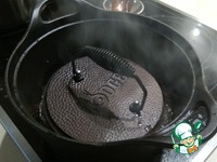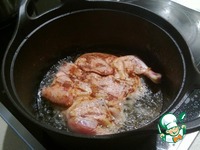 Когда цыплята достаточно помариновались, начинаем их жарить. Я беру чугунок (чтобы масло не очень сильно разбрызгивалось). Наливаем подсолнечное масло, разогреваем. Отправляем туда цыпленка. |