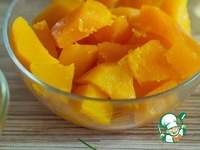 Тыкву сварить в сахарном сиропе и нарезать небольшими кубиками. Откинуть на сито для того, чтобы стёк лишний сироп. Разогреть духовку до 200 °С. Подготовить форму для маффинов. |