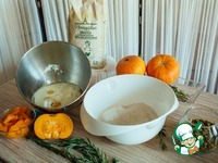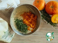 Соединить обе смеси венчиком. Добавить мелко нарезанный розмарин. Вмешать аккуратно тыкву. |