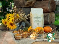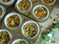 Выложить тесто в формы. Выложить кусочки тыквы и посыпать семечками. |