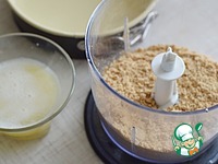 1. 1. Печенье смолоть на комбайне в крошку. Сливочное масло растопить. Затем добавить его к печенью и хорошо перемешать. |