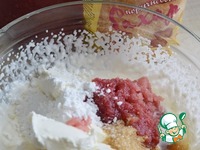 3. В миске смешать сливочный сыр, сахар, молоко, взбитые сливки яичные желтки, кукурузный крахмал. Можно добавить обычный сахар и чайную ложку розовой воды. Хорошо все взбить миксером. |