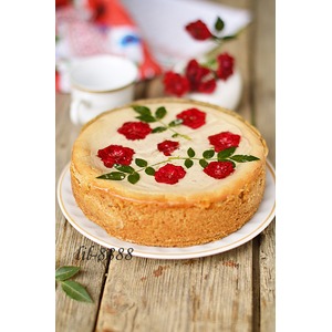 5. Затем приготовить желе согласно инструкции на упаковке. На чизкейке разложить розы и залить желе. |