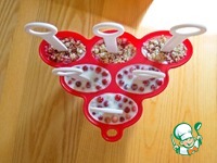 И начинаем выкладывать мороженое слоями. 1 слой - около 1 ч. л. йогурта, 2 слой - ягодный, 3-й - овсяный. Нужно "закончить" мороженое овсяные слоем. |