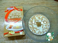 В теплое молоко добавить гречневые хлопья и оставить на 3-5 минут для набухания. Для приготовления хлеба я использую хлопья гречневые от ТМ "Мистраль". |