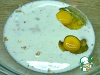 Когда хлопья набухли добавить сахар, соль, дрожжи и яйца. Тщательно перемешать. |