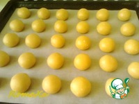 Формируем шарики диаметром около 4 см, выкладываем их на противень, застеленный пергаментом и отправляем в духовку на 15 - 20 мин при 180 градусах. |