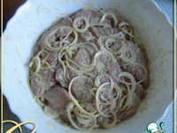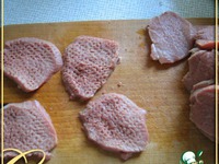 Свинину тонко нарезать, отбить. |