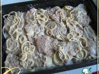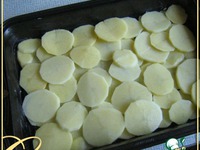 Картошку нарезать колечками, уложить в форму. |