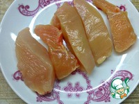 Грудку вымыть, обсушить и порезать на кусочки средней величины. |