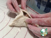 Готовим тесто: Подогреваем молоко, добавляем туда дрожжи, сахар и муку. Все тщательно перемешиваем и оставляем в теплом месте на 30 минут. Когда на молоке поднимется пенка, добавляем чайную ложку соли и хорошенько перемешиваем. Всыпаем в большую чашку (или кастрюлю) примерно 1 кг муки и вливаем туда дрожжевую закваску. Перемешиваем, при необходимости добавляя еще муку (муку супруга добавляла на глаз до консистенции очень густой сметаны). Ставим вымешанное тесто в водяную баню (чашку помещаем в кастрюлю с горячей водой) на 2 часа. Есть еще ускоренный вариант - поставить тесто в духовку минут на 40-50 при температуре 50С – предварительно накрыв его пищевой пленкой и проколов в нескольких местах, чтобы тесто "дышало". Периодически помешиваем. Когда тесто увеличится в 2 раза, насыпаем на рабочую поверхность муку, обильно смазываем руки растительным маслом и выкладываем тесто на поверхность. Хорошенько вымешиваем тесто – оно должно стать пластичным, не слишком мягким, но и не твердым. |