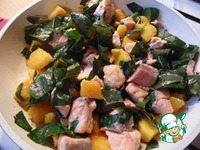 Мангольд нашинковать, добавить в рыбе и тыкве, приправить блюдо по вкусу, обжарить еще 5 минут. |