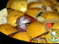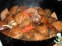И укладываем его в казан между кусками айвы. |