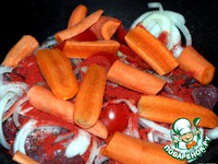 Морковь режем крупно и выкладываем поверх слоя помидор. |