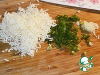 Натереть на мелкой терке сыр. Зелень и чеснок измельчить. |