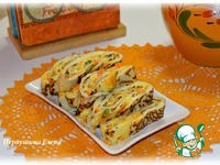 Описание: Рулетики из рисовых блинов с морковно-сметанной начинкой. Нежные блинчики на измельченных рисовых хлопьях с ароматной сметанно-морковной начинкой с чесночком. Угощайтесь!
