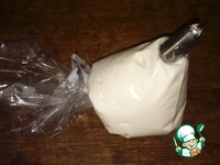 Крем переложить в кондитерский мешок с насадкой или в обычный канцелярский файл, в котором срезать уголок. |