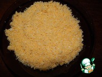 Приготовить панировку. Для этого измельчить сыр, смешать с кукурузной мукой, кокосовой стружкой и чесноком, добавить специи. |