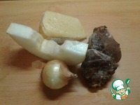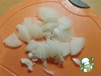 Лук ошпариваем кипятком и заливаем холодной водой с яблочным уксусом для маринования. Пусть стоит, пока подготавливаем другие ингредиенты. |