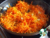 Итак, лук порезать на кусочки, морковку натереть на крупной терке и поджарить на небольшом количестве масла. |