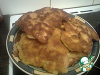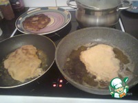 Обжариваем наши отбивные на среднем огне до золотистой корочки, куриное мясо готовится быстрее чем свинина, к тому же курочка постояла в смеси пряностей и чеснока, которая ускоряет размягчение мяса. |