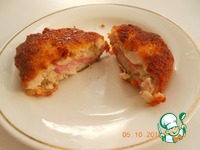 Разделить фарш на равные кусочки и в каждый завернуть по кусочку ветчины. Обвалять в панировочных сухарях и обжарить до золотистой корочки с обеих сторон |
