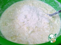 Насыпала муку и ещё раз хорошо взбила миксером. |