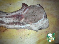Берем кусок свиной корейки толщиной примерно 5см, совсем немного отбиваем с обеих сторон. Обтираем солью и молотым перцем. |