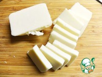 Сыр нарезать на порционные кусочки, толщиной не менее 0,5 см (иначе будет очень жирно, и сыр быстро расплавится). |