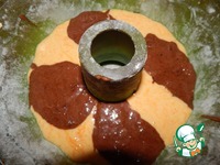 Форму смазываем сливочным маслом и присыпаем мукой, тесто выкладываем в шахматном порядке, или так, как вам нравится - слоями например |