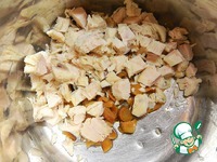 Лук нарезать кубиками и замариновать в уксусной воде (100мл воды + 1ст. л. уксуса). |